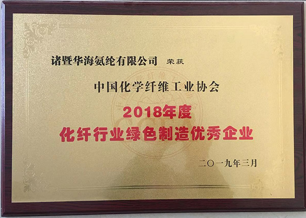 在此次会议上,公布了中国化纤协会2018年度化纤行业绿色制造及智能制造重点企业。我司诸暨华海氨纶有限公司荣获“2018年度化纤行业绿色制造优秀企业”。