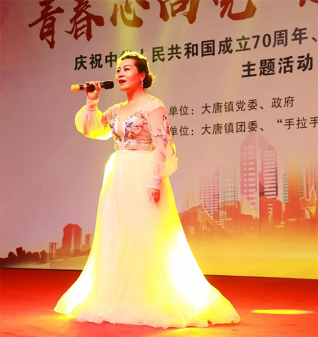 诸暨华海氨纶有限公司员工宋晓英作为企业代表,在晚会现场,给大家演唱了一首《天路》,向光荣的五四青年节致敬,向光荣的革命先辈、一代又一代砥砺拼搏、建设祖国的优秀青年致敬。