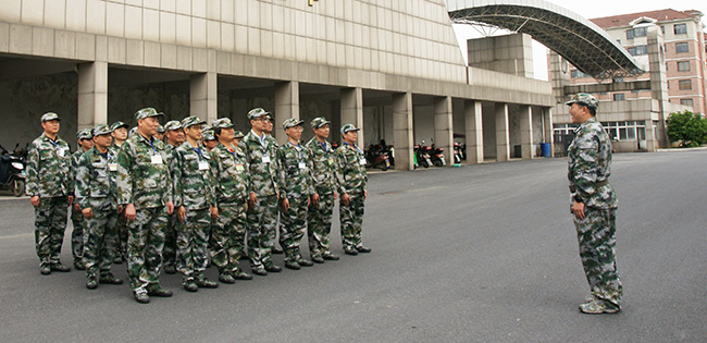 在授旗仪式之后,大唐镇武装部领导给我司民兵进行了操练。