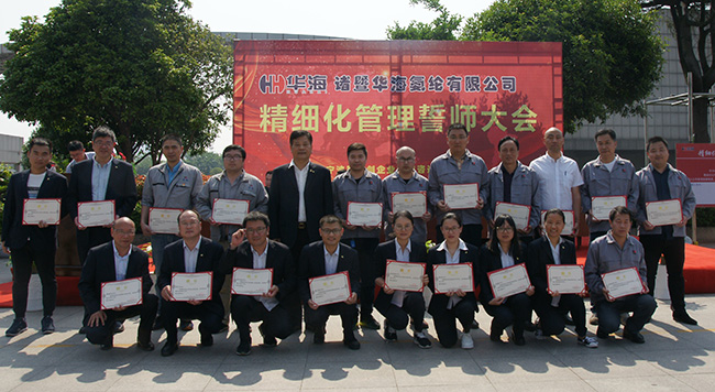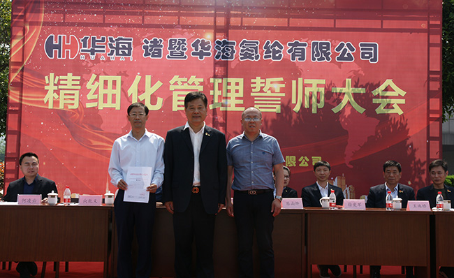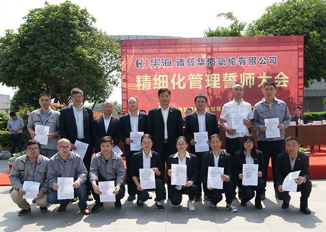 在会上,董事长蔡华峻说:“今天我们在这里召开华海氨纶的精细化管理誓师动员大会,意味着华海氨纶全面的精细化管理实施阶段正式拉开序幕,意味着华海氨纶在寻求管理提升、自我完善、锐意改革的开始,意味着我们将告别昨天,创新迎接美好未来的开始。” “华海氨纶的未来要靠大家共同创造,将来的命运要靠自己把握,让我们共创华海氨纶美好的明天”。