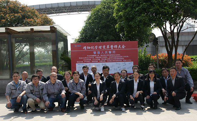 誓师大会的胜利召开标志着华海公司全员精细化管理正式拉开序幕,标志着华海公司精细化管理这条大船正式地杨帆起航。在后面6个月的精细化管理中,我们策划了五大战役,分别是组织再造、效率提升、质量提升、人才培养和执行力打造。精细化管理宏伟蓝图的实现需要全体华海人一起完成。